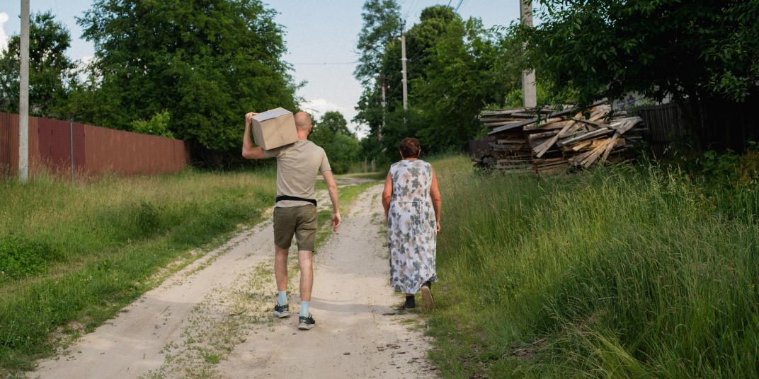 Foto: Hlib Stoiko, toidupakkide jagamine Kiievi oblastide külades